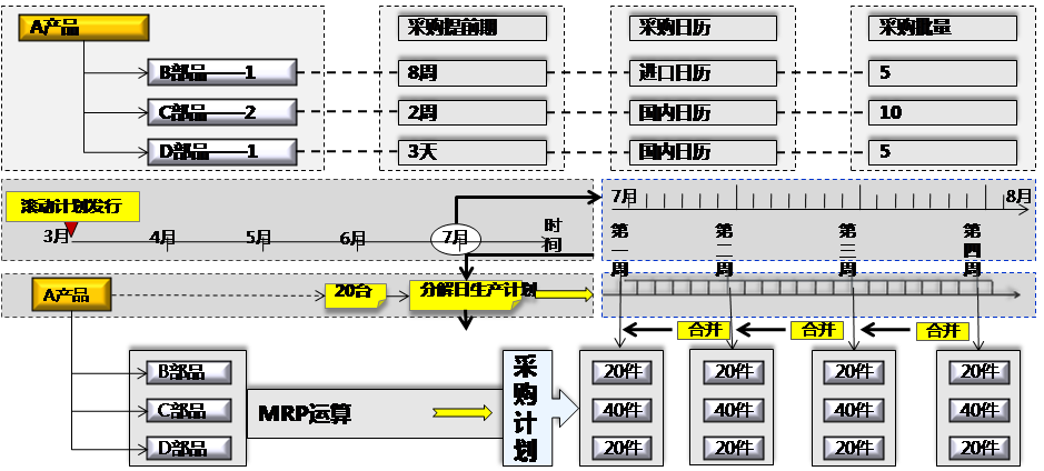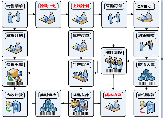 1. 銷售接單后,計劃部門編排1個月的滾動計劃,MPS運算出生產(chǎn)計劃、MRP運算出采購計劃。