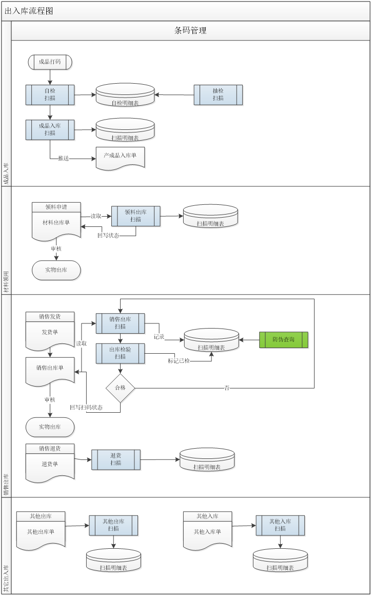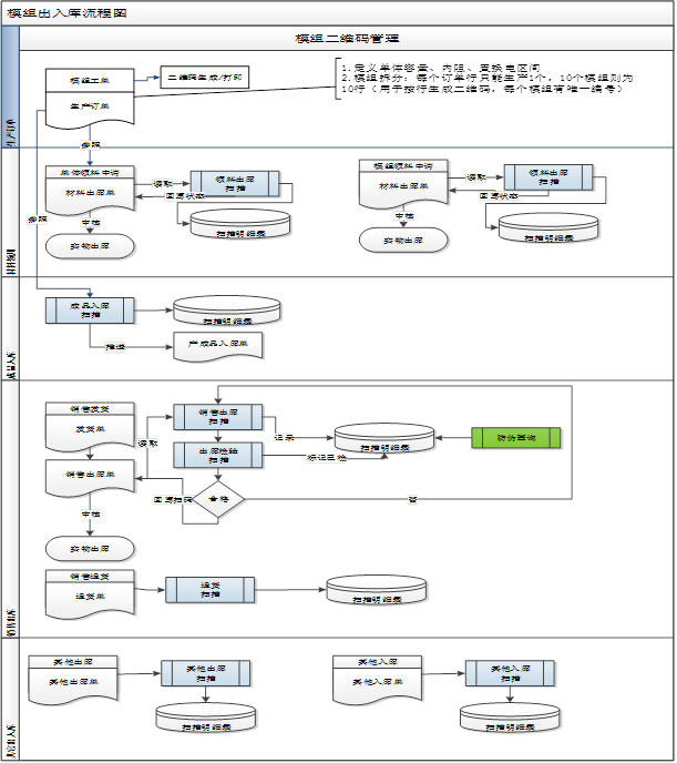 3. 成品完成后,掃描條碼入庫,實現(xiàn)單臺管理,實時盤庫。