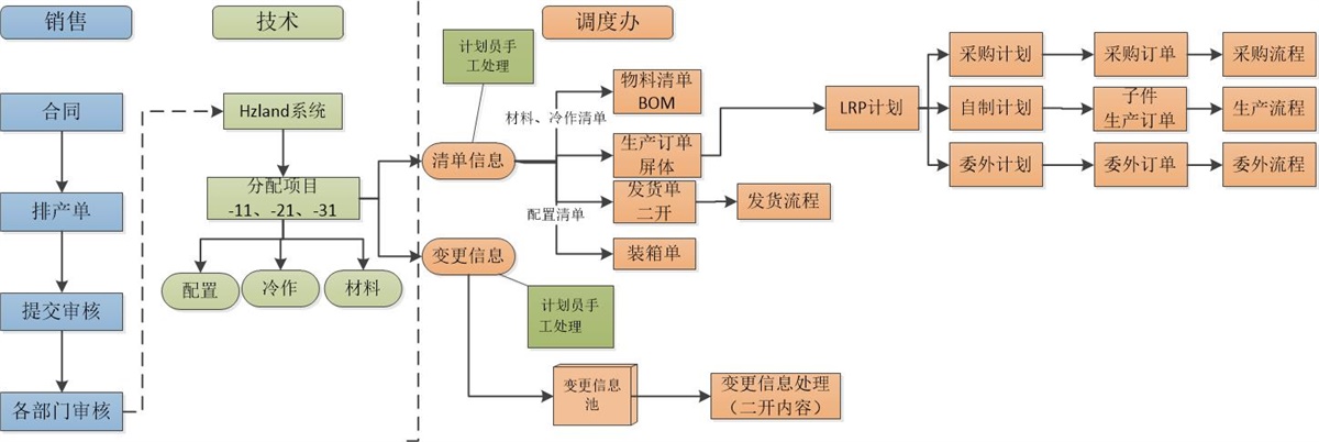 3)銷售到設計:通過客戶自己的hzland系統(tǒng),對客戶訂單進行設計生產,拆分成配置清單、冷作清單、材料清單;